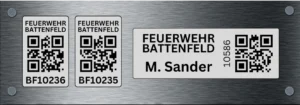 Unsere Kleideretiketten wurden speziell für die hohen Anforderungen in der Feuerwehr entwickelt. Sie haften sicher auf der Schutzkleidung und bleiben selbst nach häufigem Waschen und intensiver Nutzung gut lesbar. Jede wichtige Information – von der Inventarnummer bis hin zum Namen Ihrer Feuerwehr – ist klar aufgedruckt und sowohl für Menschen als auch für Scanner schnell zu erfassen. Die Etiketten sind nicht nur wetter- und waschbeständig, sondern auch kratzfest. Selbst nach vielen Einsätzen behalten sie ihre Lesbarkeit, sodass die Zuordnung Ihrer Schutzkleidung immer gewährleistet bleibt. Diese Langlebigkeit macht sie zur idealen Wahl für Ihre Feuerwehrkleidung.